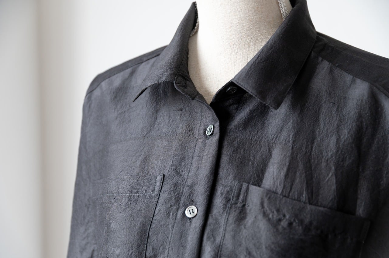 高級感あふれる薄手のシルク100%の布で、ドルマンスリーブのオーバーシャツを作りました。