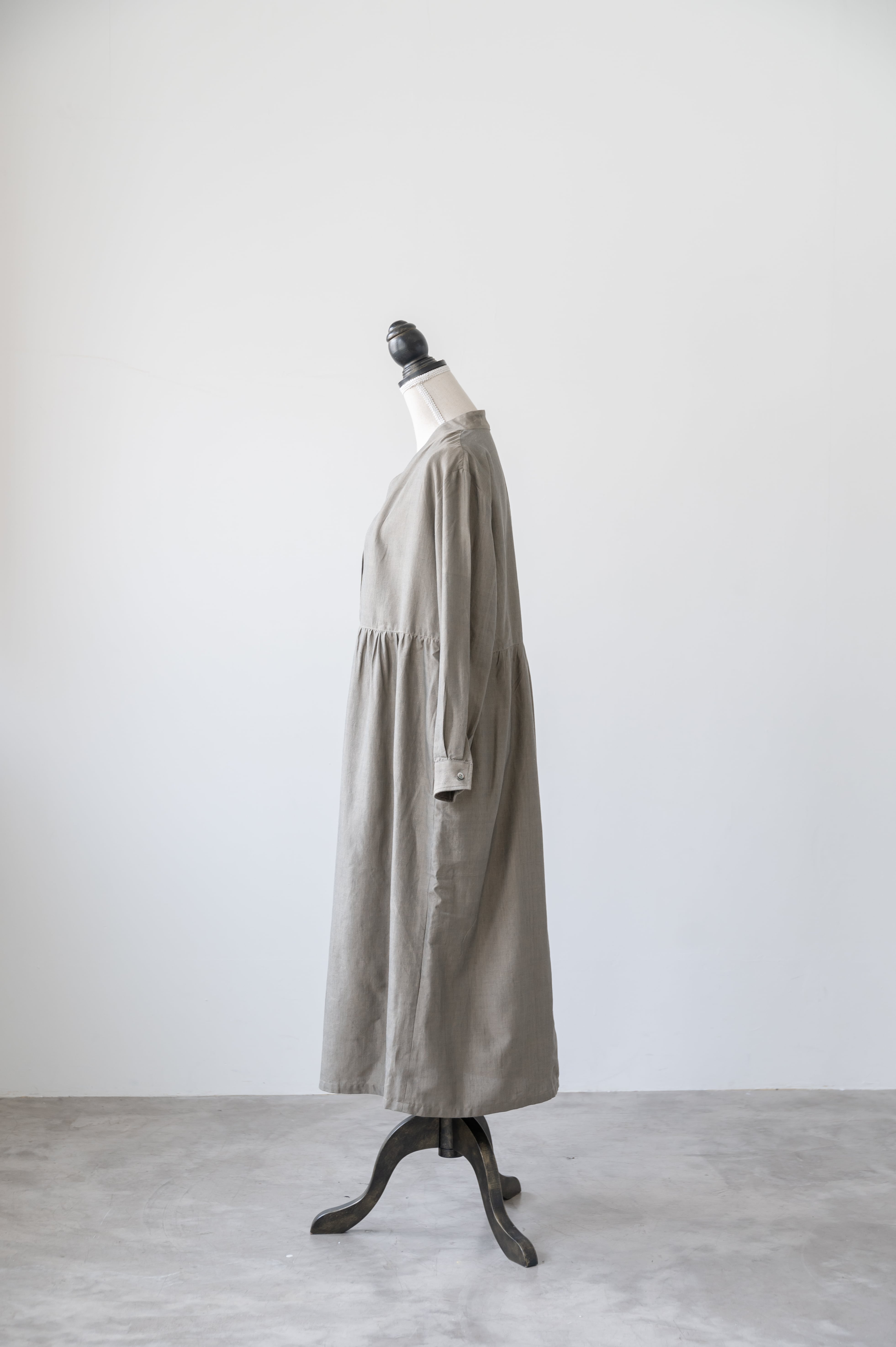 手紡ぎ手織りのシルクコットンで、ロング丈のワンピースを作りました。